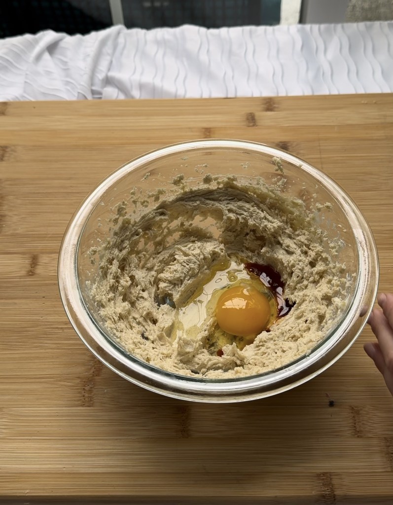 add in the egg and vanilla and beat together until well combined(about 1 min)